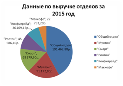 Рисунок 15 – Данные по выручке отделов ООО «Антарес» в 2015 году