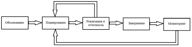 Рассматривая осуществление модернизации в контексте теории управления проектами можно выделить 5 этапов, представленных на схеме ниже.