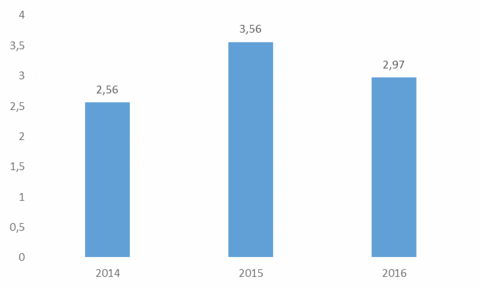 | 2014 | 2015 | 2016 | абсол. | в % | ||