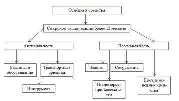Активная часть основных средств воздействует на предмет труда, перемещает его в производственном процессе и осуществляет контроль над ходом производства; их пассивная часть создает условия для бесперебойного функционирования активной части [2].