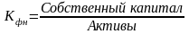Рассмотрим коэффициент автономии (финансовой независимости), который показывает степень независимости предприятия от кредиторов. Коэффициент определяется как отношение собственного капитала к общей сумме активов, тем самым показывая долю собственных средств в общей структуре активов (куда входят и собственные средства и заемные). Если коэффициент автономии имеет низкие значения, это говорит о том, что предприятие финансово неустойчиво (зависимо от кредиторов).