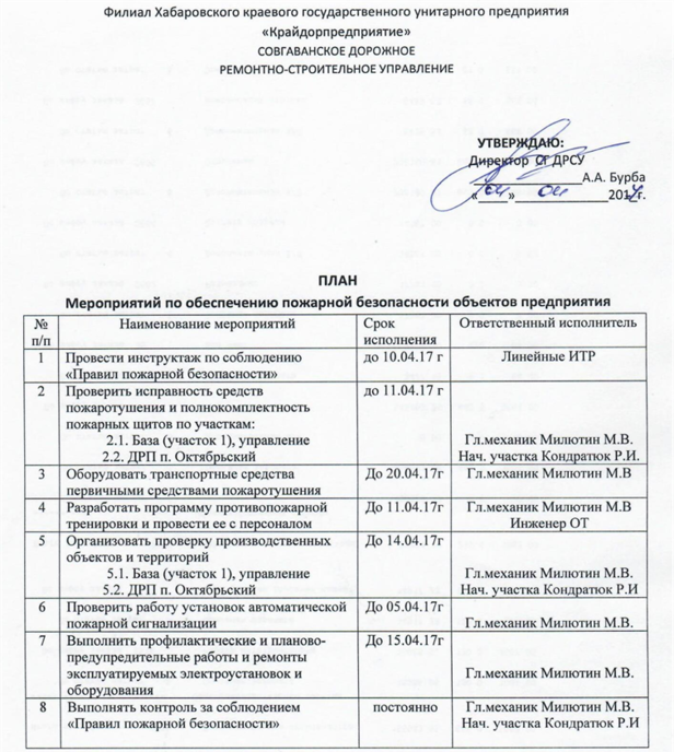 Цель работы - разработка мероприятий по повышению эффективности пожарной безопасности на предприятии филиала хабаровского краевого государственного унитарного предприятия «Крайдорпредприятие» Совгаванского дорожного ремонтно-строительного управления.