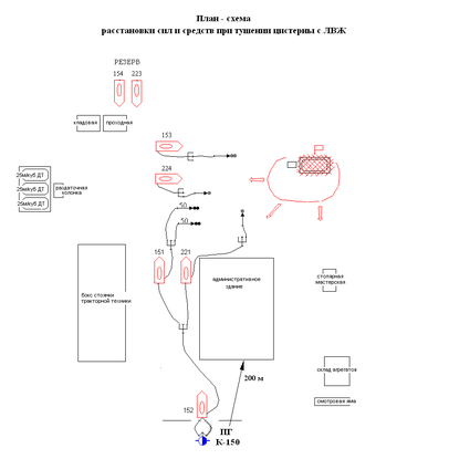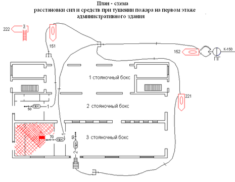 Рисунок 3.1 Схема размещения сил и средств при тушении