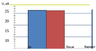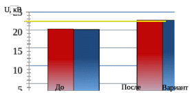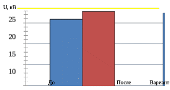 Рисунок 5.1 – Минимальные напряжения на токоприёмнике ЭПС до и после установки СТК на посту секционирования Садовый участка Дормидонтовка-Аван