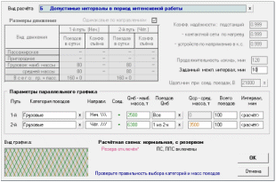 При выполнении расчетов в данном блоке, определяются значения наименьших допустимых межпоездных интервалов, а также ряд ограничивающих параметров: