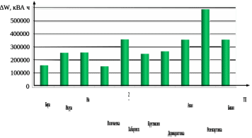 Рисунок 3.3 – Расходы электроэнергии на тяговых подстанциях