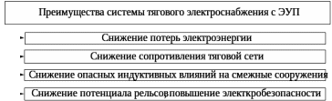 Внедрение системы ЭУП при электрификации новых железнодорожных участков позволяет уменьшить число тяговых подстанций, при увеличении МПЗ до 75 – 80 км, а на участках с легким профилем пути до 100 км. В свою очередь при увеличении длины МПЗ (за счет снижения неравномерности нагрузки) снижается трансформаторная мощность.