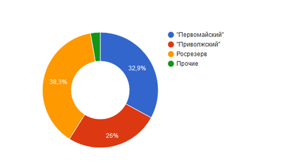 По данным таблицы 6 видно, что структура закупок достаточно стабильна. Так, в период 2014 – 2016гг. наибольший удельный вес в общем объеме закупок занимает Росрезерв (37,54 – 38,30 %). Структуру закупок за 2016 год отразим на диаграмме (рисунок 1).