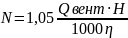 - коэффициент полезного действия вентилятора, равный 0,7.