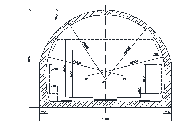 По данным инженерно-геологических изысканий крепость породы по шкале профессора Протодьяконова равна f=от 0,6(суглинок) до 9,0(трещиноватый габбро), что обуславливает применение обделки подковообразного очертания со стенами, выпуклыми в сторону породы.
