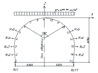 Расчетная схема тоннельной обделки приведена на рисунке 5.7. иосновная система приведена на рисунке 5.8.