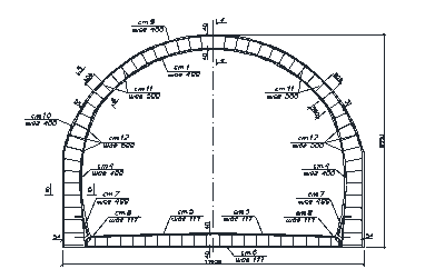 Горный массив, в месте тоннельного пересечения сложен достаточно крепкими породами с коэффициентами крепости по шкале профессора Протодьяконоваf=3,0 и 9,0. В связи с тем, что размеры выработки автодорожного тоннеля достаточно большие S=89м2, принято решение выполнить проходку тоннеля следующим образом: