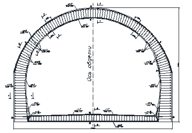Вывод: принимается9 стержней рабочей арматуры диаметром 25 (мм) класса A300 для тоннельной обделки типа 3 при крепости породы f=0,8 в замковом сечении и в сечении с максимальным отрицательным моментом. В стене принимаем 9 стержней рабочей арматуры диаметром 14 (мм) класса A300.