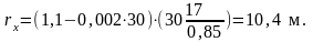 Для примера рассчитаем зону защиты молниеотводов № 1-2. Проведем расчет на высоте 17 м, высота молниеотвода h = 30 м.