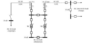 2) Однолинейная схема понизительной подстанции 35/10 кВ Шахтаум;