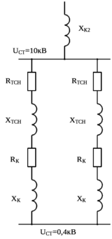 где X0 и R0 – соответственно паспортные удельные индуктивное и активное сопротивление кабеля, Ом/км; lК – длина кабеля, км;