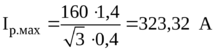 где Uн – номинальное напряжение, Uн = 0,4 кВ; кп – коэффициент перегрузки, кп = 1,4; SН.ТСН – номинальная мощность трансформатора собственных нужд, для выбранного трансформатора, SН.ТСН =160 кВА.