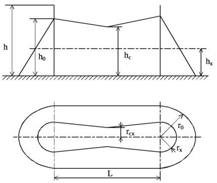 где h0 - высота молниеотвода, м; h - высота вершины защитного контура, м