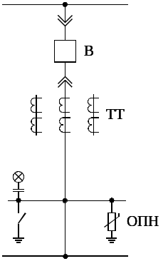 Поскольку ТСН предполагается мощностью 160-250 кВА, то отдельную ячейку для него устанавливать нецелесообразно. Для питания ТСН принимаем ячейку со схемой главных цепей №1, как для секционного выключателя.