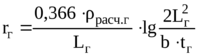 где LГ – суммарная длина горизонтальных заземлителей, найденная предварительно по вычерченному плану ЗУ, м; b – ширина полосы горизонтального заземлителя, м; tГ – глубина заложения горизонтальных заземлителей, м; ρРАСЧ.Г – расчетное сопротивление земли для горизонтальных заземлителей.
