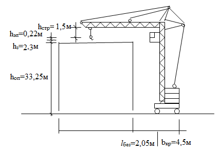 Требуемая высота подьема крюка показана на рис. 2.1.