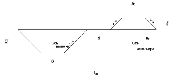 Поперечные размеры кавальера назначаются из условия, чтобы площадь его поперечного сечения Fк была равна площади сечения выемки Fв на соответствующем пикете с учетом разрыхления грунта при разработке: