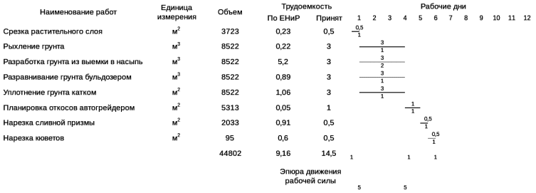Таблица 5.4 - График выполнения процессов по возведению насыпи прицепным скрепером ДЗ-20
