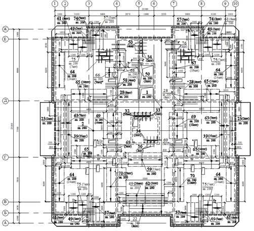 Рисунок 2.3 Схема армирования перекрытия типового этажа (верхняя сетка)