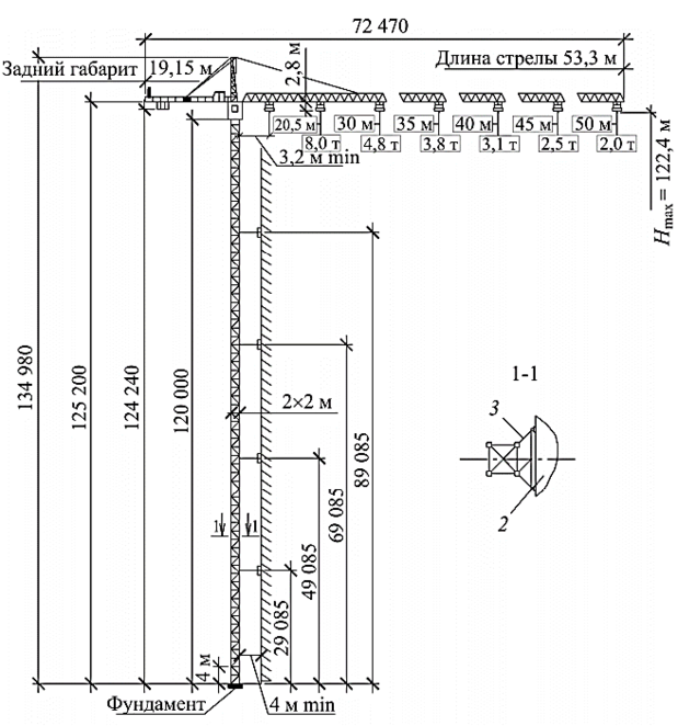 Рисунок 2.6 Схема башенного приставного крана КБ-473