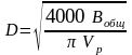 Исходя из общего расхода воды Bобщ рассчитывается диаметр трубы по формуле 2.43.