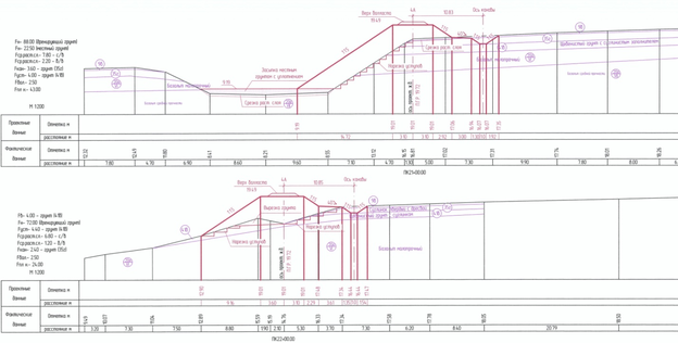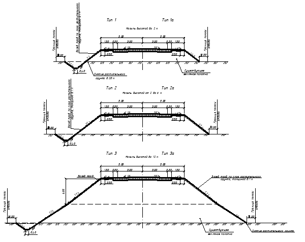 Поперечные профили земляного полотна