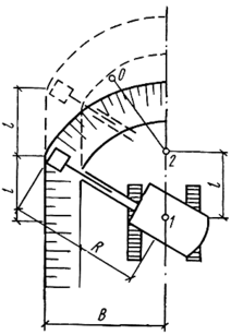 Рис. В.15- Схема проходки экскаватора где: 1, 2 - стоянки экскаватора, В – максимальная ширина разработки, L – Расстояние между стоянками.