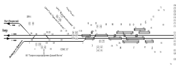 | Отправление пассажирского поезда на А с 10, 12 пути | 42, 28, 26, 16, 14, 12, 18а, 8 | 5 | 3 | - | 15 | - | 13 | г, ж, и, к |