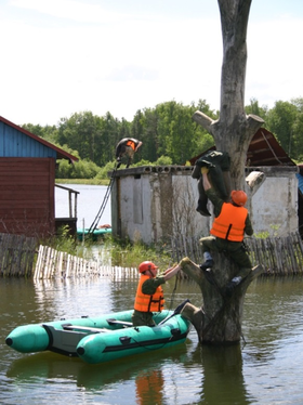 перемещение пострадавших, расположенных над поверхностью воды (с деревьев, верхних этажей и крыш домов);
