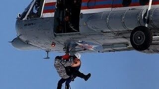 Спасение пострадавших с поверхности воды на борт вертолёта с помощью спасателя.