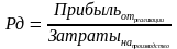 | Показывает размер прибыли на рубль реализуемой продукции |