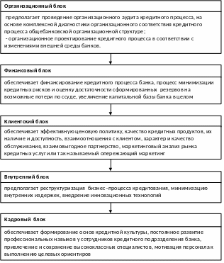 - внедрение современных управленческих технологий в кредитную деятельность банка.