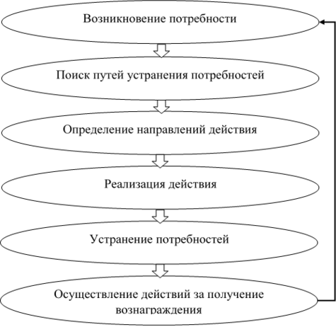 Пятый этап - получение вознаграждения за реализацию действия. Проделав необходимую работу, человек получает то, что он может использовать для устранения потребности, либо то, что он может обменять на желаемое для него.