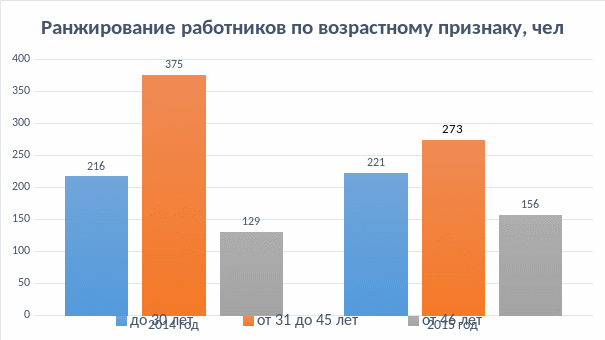 Рисунок 6 – Гистограмма ранжирования работников по возрастному признаку