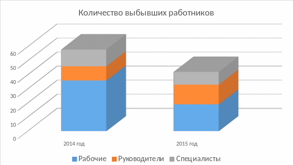Таким образом, число уволившихся за 2014г и 2015г составляет 8,05%, и 6,4%, соответственно, от общего числа работников.