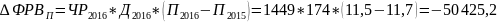 Как видно из приведенных данных, имеющиеся трудовые ресурсы предприятие использует недостаточно полно. В среднем одним рабочим отработан, в 2015 году 176 дней, в 2016 году 175 дней, из за чего сверхплановые целодневные потери рабочего времени составили на одного рабочего 1 день, а на всех 1 449 дней, или 16 663,5 ч (1 449 *11,5).Существенны и внутрисменные сверхплановые потери рабочего времени: за один день они составили 0,2 ч, а за все отработанные дни всеми рабочими – 50 715 ч. Общие потери рабочего времени – 67 378,5 ч (16 663,5 + 50 715), или 2,31% (67 378,5: 2 916 112,5)