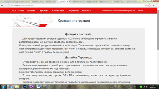 На главной странице расположены ссылки на инструкции (рисунок 3.9), блок «Документы» и блок «Полезная информация», который предназначен для хранения справочной информации и ссылок на необходимые для работы пользователя ресурсы.