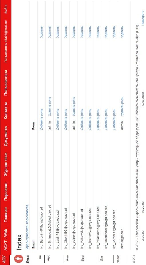 Одной из важных функций системы является возможность администрирования пользователей без затрат времени на назначение различных ролей – после авторизации пользователи получают доступ к закрытым разделам ИС для просмотра данных АСУТ без возможности их редактирования.