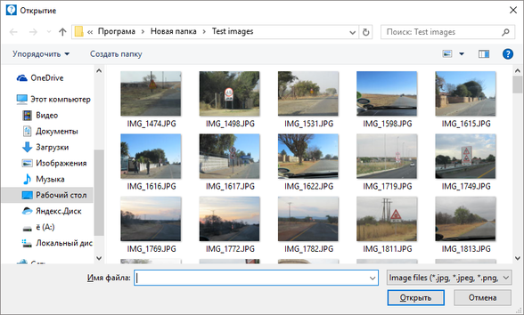 Кнопка «запуск» открывает окно импорта тестовых изображений для проверки работоспособности программы. На рисунке 3.3 показана тестовая выборка изображений