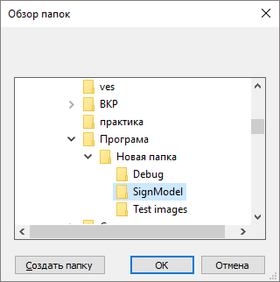 Кнопка «обучение» позволит выбрать обученную сеть или обучить новую.