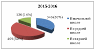 Самый большой контингент учащихся составляет среднее звено с 5 по 9 классы – 47 %. Самый маленький – старшее звено, 10-11 классы – 16 %. Начальная школа – 37 %.