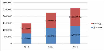 Рисунок 18 – Динамика доходов и расходов с 2013 по 2015 года.