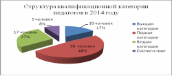 Рисунок 3 – Структура квалификационной категории педагогов за 2014 – 2015гг.