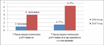 | 3.Убыль педагогических работников | 1 | 1,5 | 3 | 4,8 | Увольнение на пенсию, переезд в другой город, перевод на др.должность |