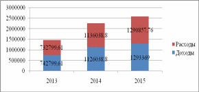 Рисунок 9 – Динамика доходов и расходов с 2013 по 2015 года